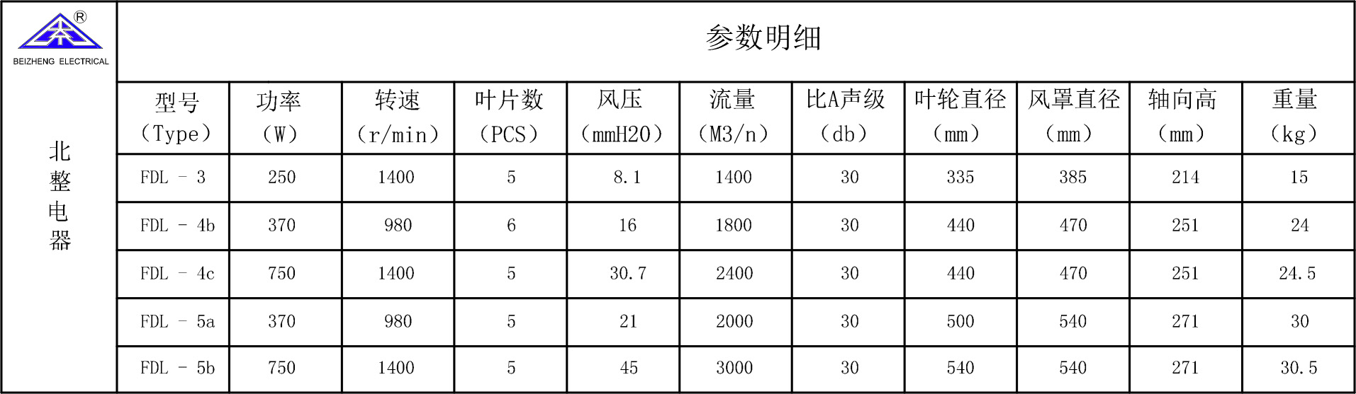 BRP系列FDL型離心,軸流風機為電控柜專用風機、與冶金、軋鋼、造紙、印刷等電器裝置配套,作為通風散熱之用。根據外形尺寸及風壓、流量的不同要求可分為FDL-3型、FDL-4(a、b、c)型,FDL-5(a、b)型。FDL型風機具有風壓高、流量大、噪音低、振動小等特點且結構合理美觀大方,因而得到廣泛使用。